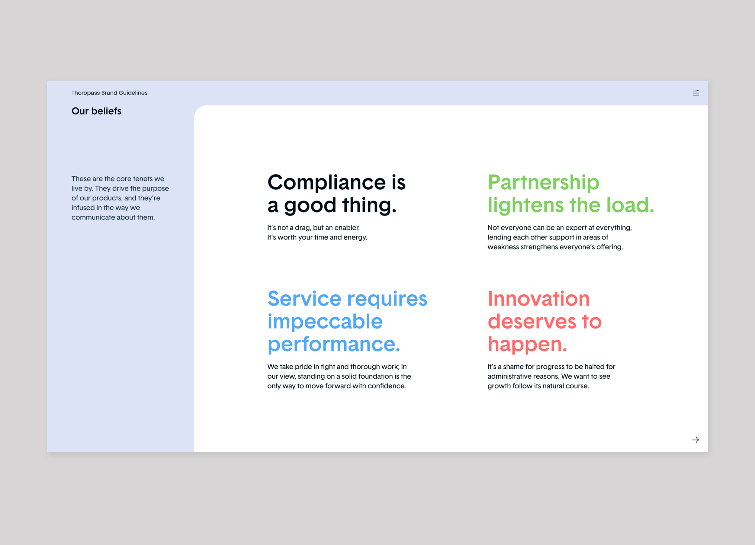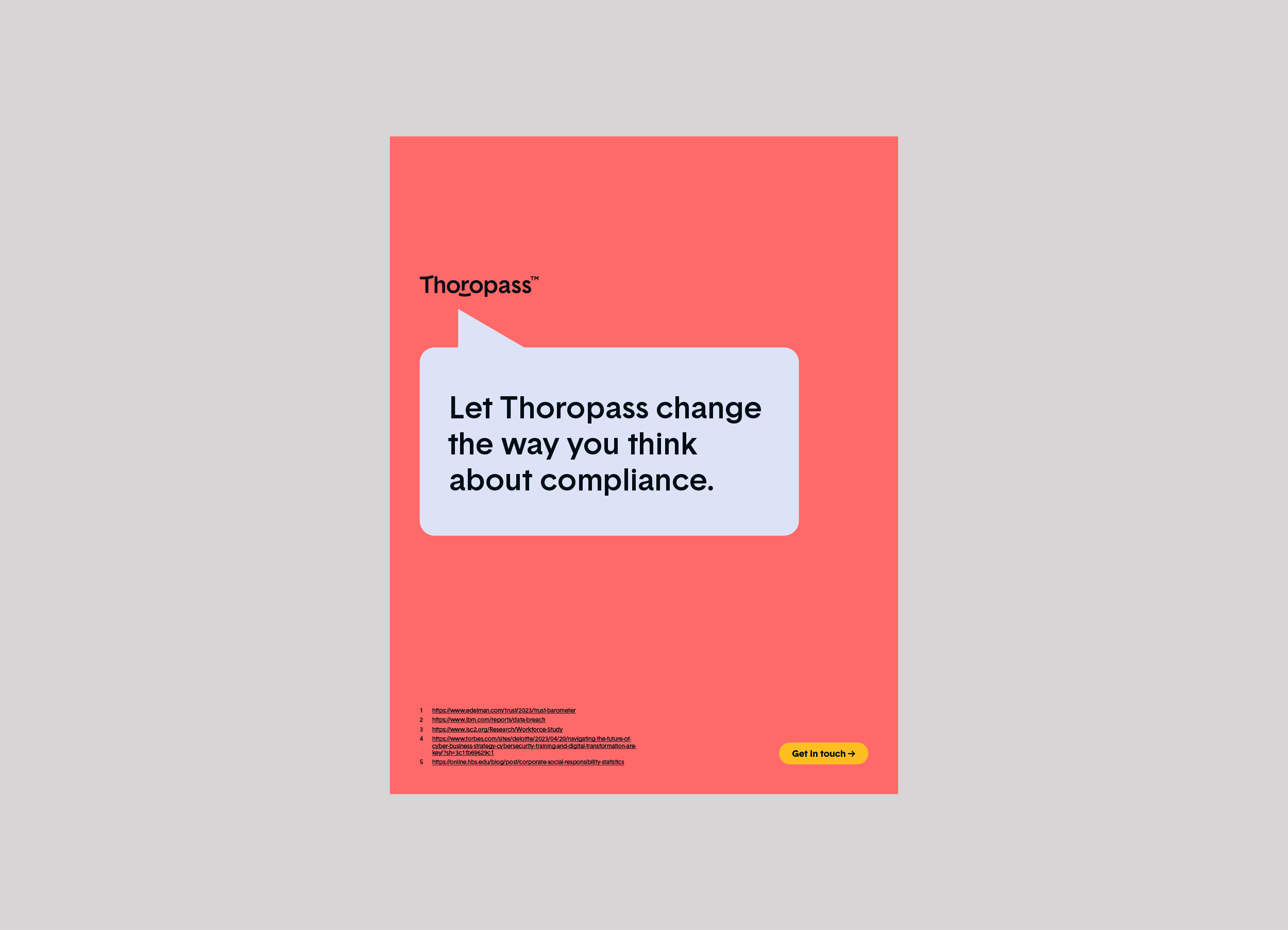 Built on an initial renaming and brand foundation by UpperQuad, we led the creative vision and strategy for a comprehensive digital-first rebrand. Through a new verbal and visual identity that is cheerful, modern, and confident, Thoropass was repositioned as the leading end-to-end compliance platform. The initiative spanned product, marketing, content, and engineering, unifying hundreds of assets and systems into a cohesive, accessible brand that supports innovation rather than slowing it down.
